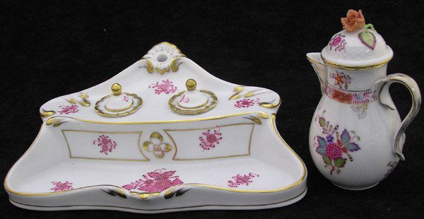 Herend Chinese Bouquet Raspberry. Three-part serving dish with handle in hand-painted porcelain.Chairish Auctions4.5(10.3k)$220(4 bids)