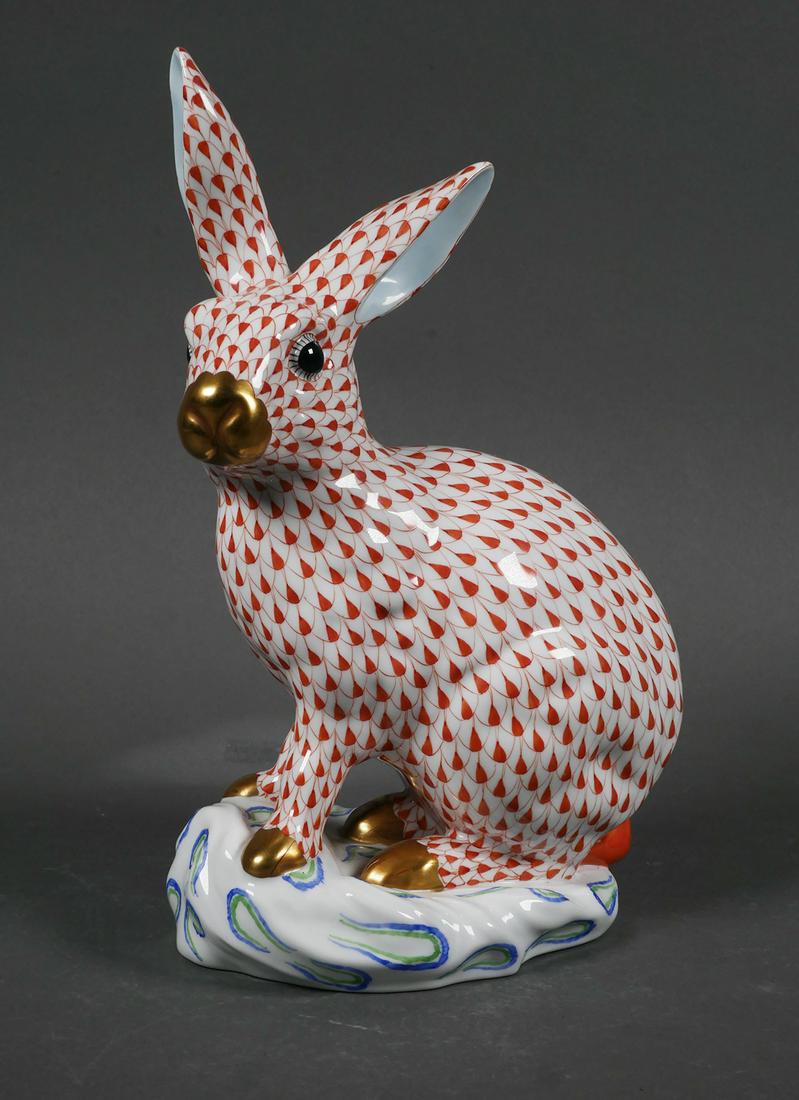 Herend Porcelain Large Red Fishnet Rabbit #5334