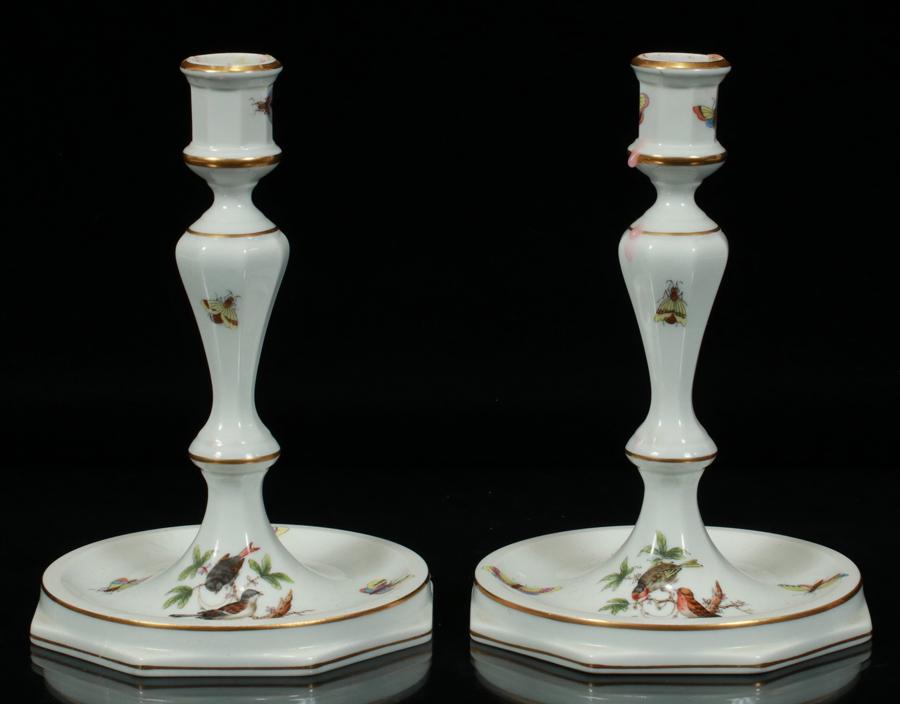 HEREND PORCELAIN ROTHSCHILD BIRD CANDLESTICKS