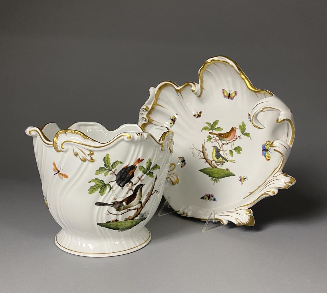 Herend Rothschild Bird Wave Dish & Cachepot