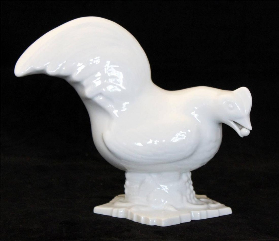 SoldHerend White Porcelain RoosterDESCRIPTION: A Herend porcelain rooster figurine in an all white base hue. Stamped along the underside with herend marks. CIRCA: 20th Ct. ORIGIN: Hungary DIMENSIONS: H: 7 1/2" L: 7 3/4" W: 4" CONDITIOSee Sold Price