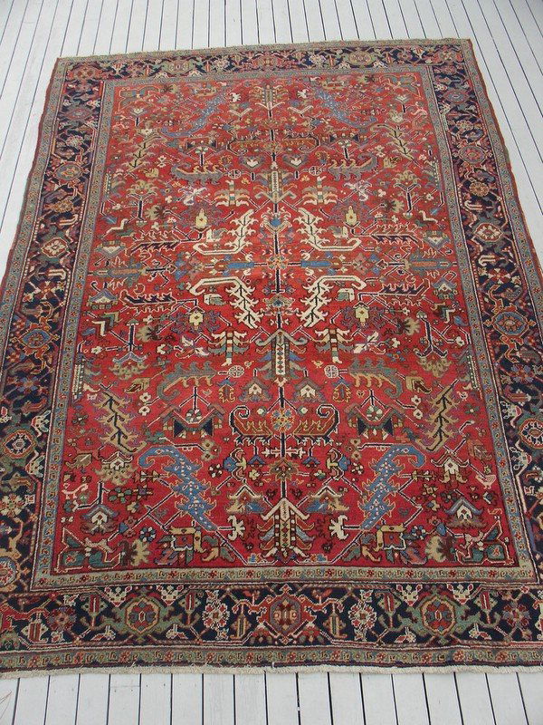 SoldQuality Persian Heriz CarpetCirca 1950. Having excellent patterns and colors. In good overall condition. W115" L202" Sold from the collection of an Edgefield, South Carolina Gentleman.See Sold Price