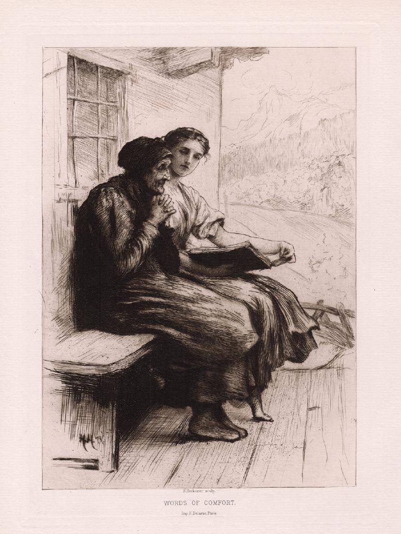 Herkomer 1879 etching Comfort signed
