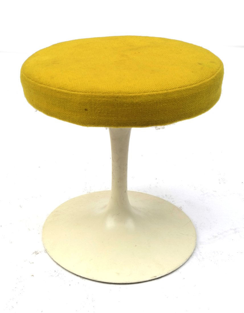 SoldGEORGE NELSON HERMAN MILLER VANITY STOOLClassic model #4672 vanity/foot stool designed by George Nelson for Herman Miller, c.1950s. Aluminum base, upholstery. Dimensions: H 20.5" x W 19.75" x D 19.5" x SH 17.5" Condition: Minor surface wearSee Sold Price