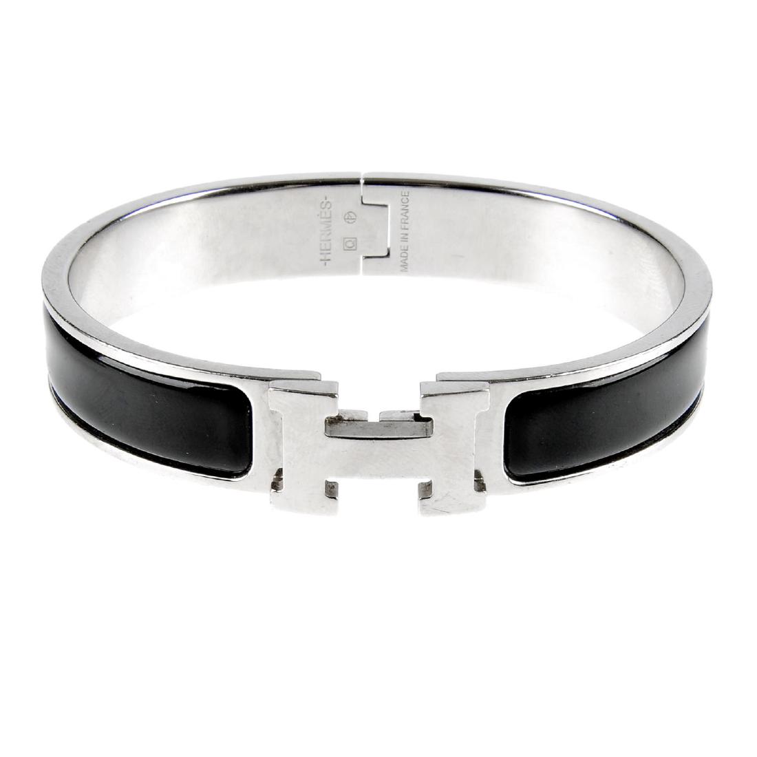 HERMÈS - a Clic H bangle. The hinged black enamel