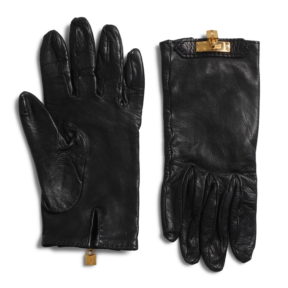 HERMÈS: BLACK LAMBSKIN CADENA LOCK CHARM GLOVES