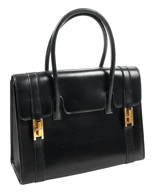 HERMES HANDBAG BLACK BOX CALF LEATHER/GOLDTONE HANDBAG