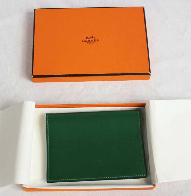 Hermes Vert Criquet Epsom Leather Passport Holder with Box