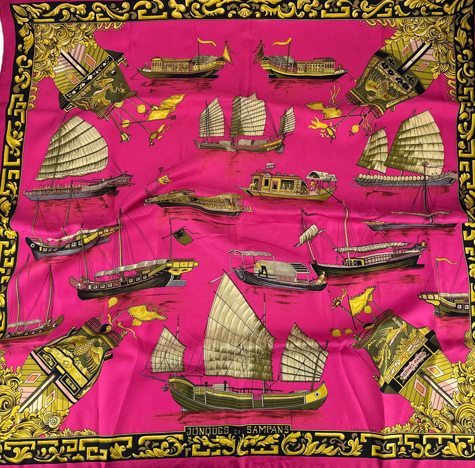 Hermes Jonques et Sampans Designer Silk Wrap Scarf