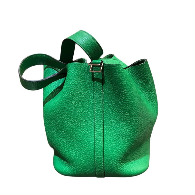 HERMES Picotin MM Handbag Clemence Leather Green PHW