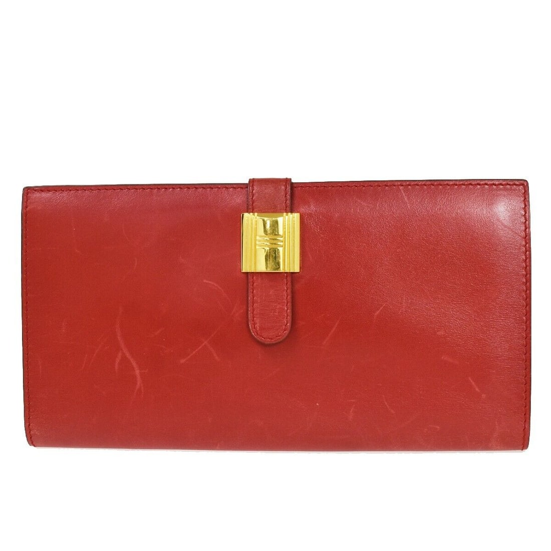 HERMES Red Leather Wallet with Silver Accents Authentic