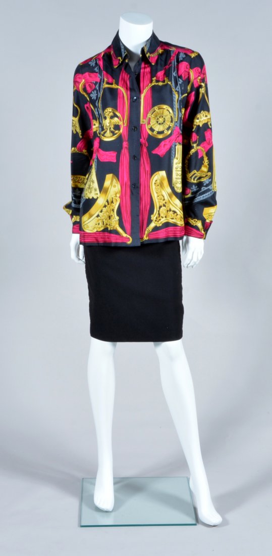 HERMÈS: DIES ET HORE PRINTED SILK BLOUSE