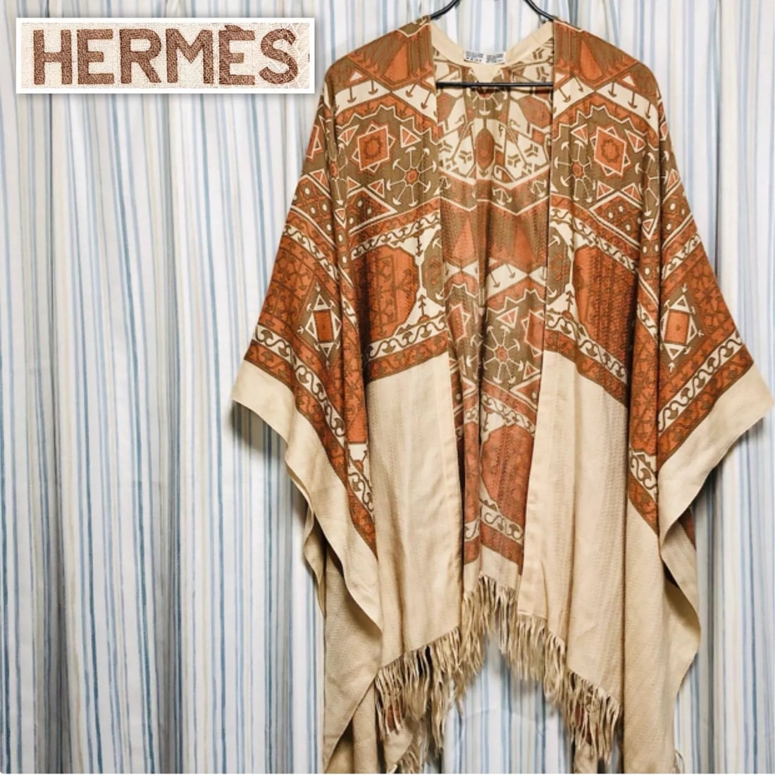 Hermes Silk Poncho Cape shawl All Over Pattern Used