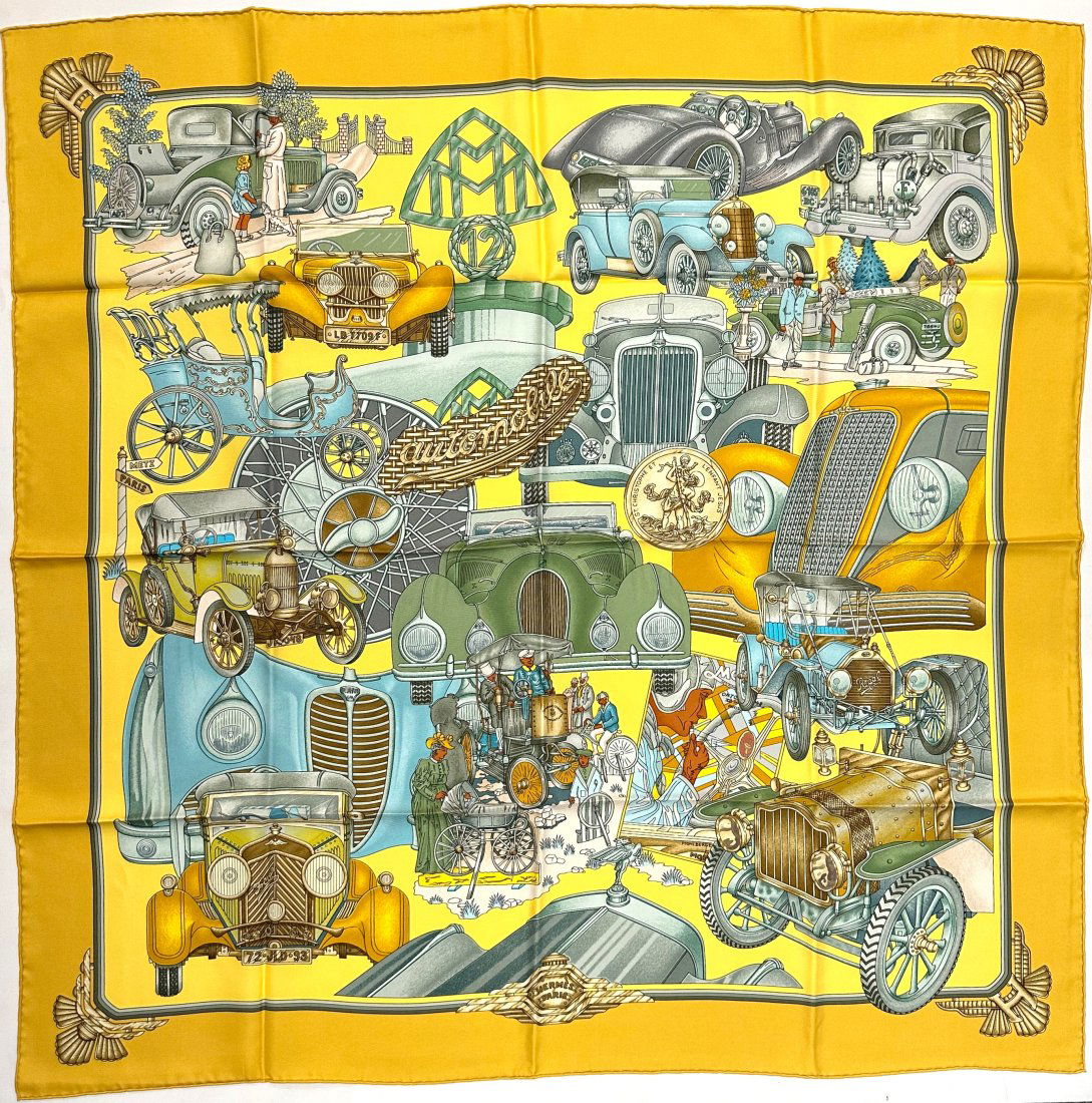Herm?¨s Paris Silk Carr?© Scarf Automobile Pattern