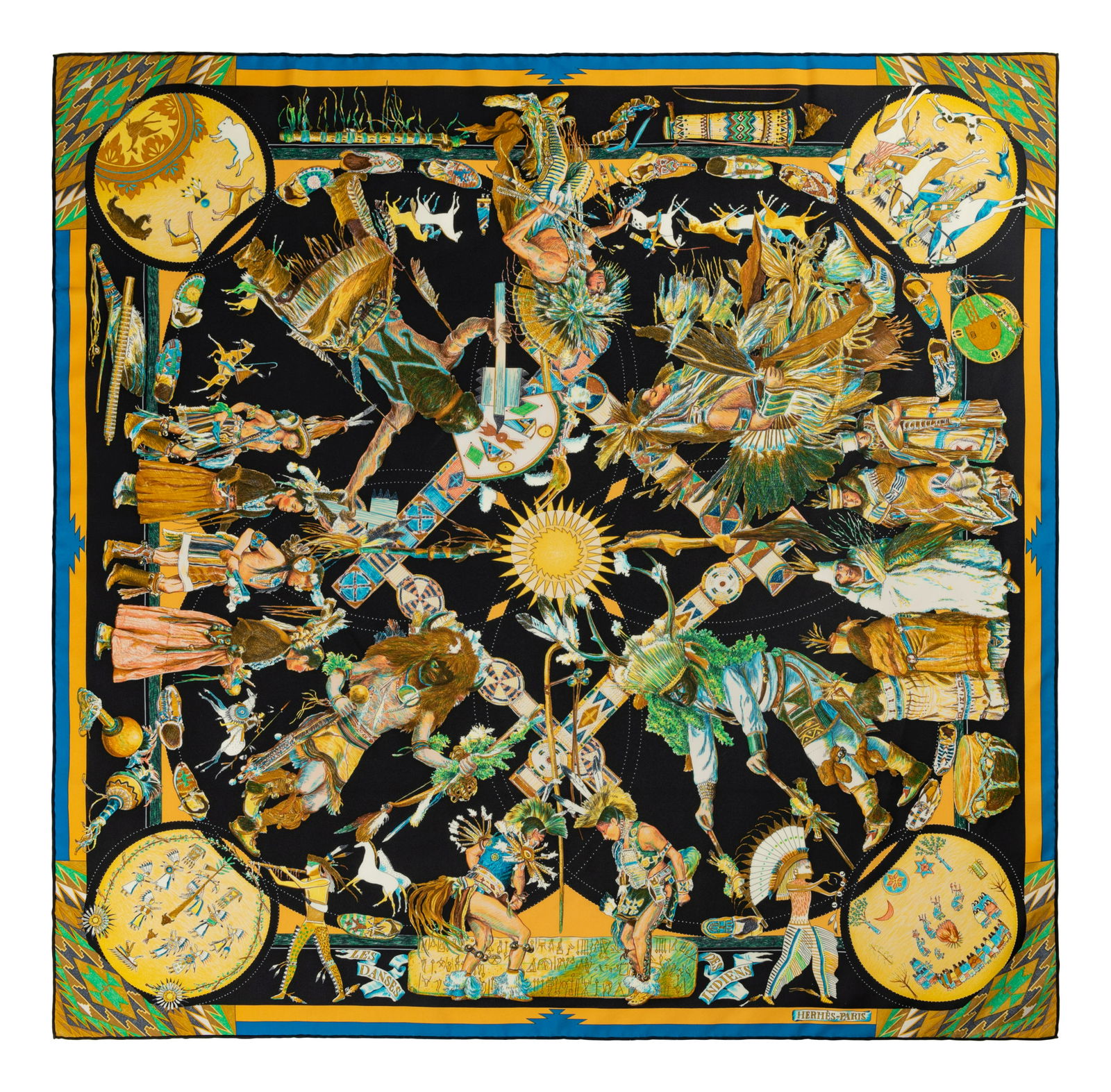 Hermes Les Danses Des Indiens Scarf by Kermit Oliver 35in France