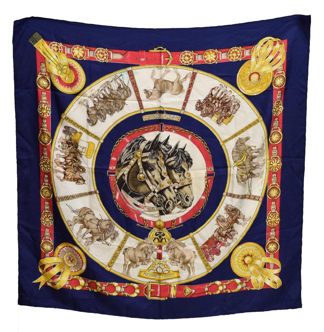 HERMES SILK SCARF, 'CHEVAUX DE TRAIT' PATTERN