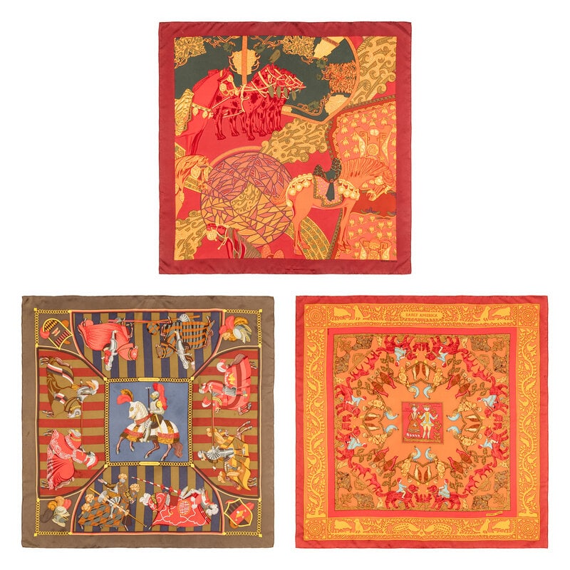 Hermès, Three Printed Silk Scarves
