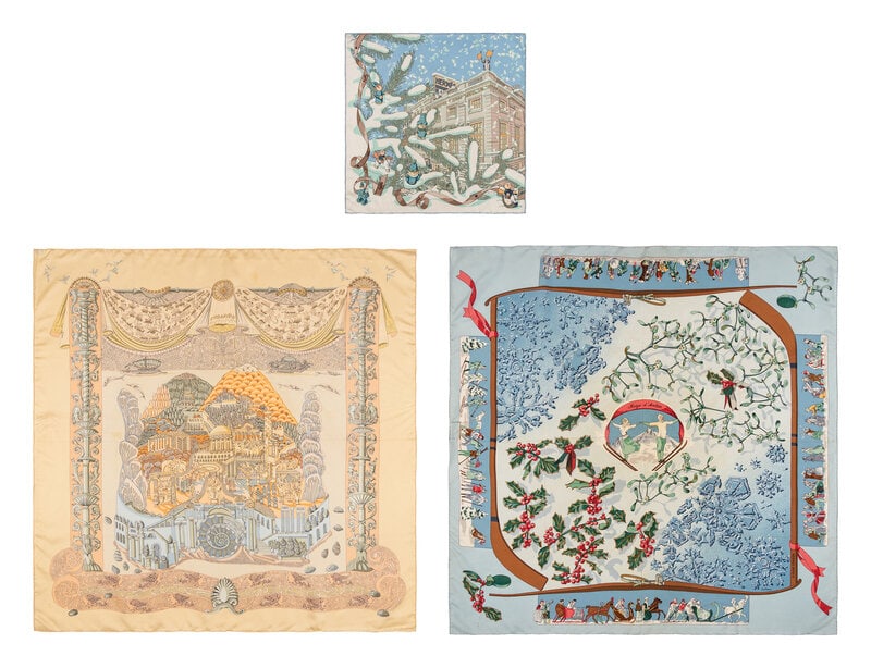 Hermès, Three Silk Scarves, Two Winter-Themed