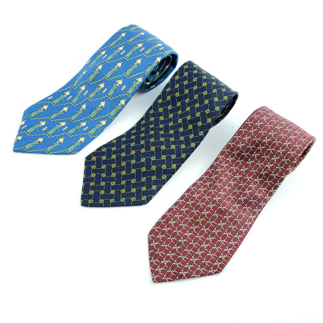 HERMÈS - three silk ties.
