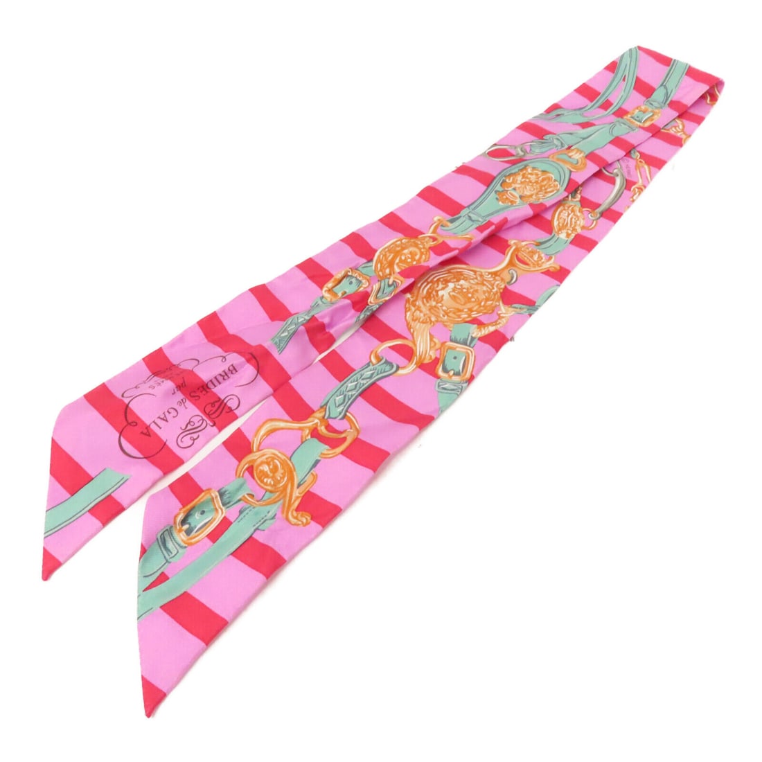 HERMES Twilly Silk Scarf Pink Yellow Multi Color