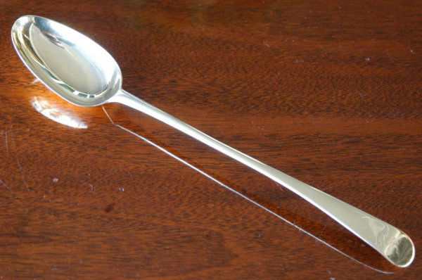 Hester Bateman 12" sterling stuffing spoon.