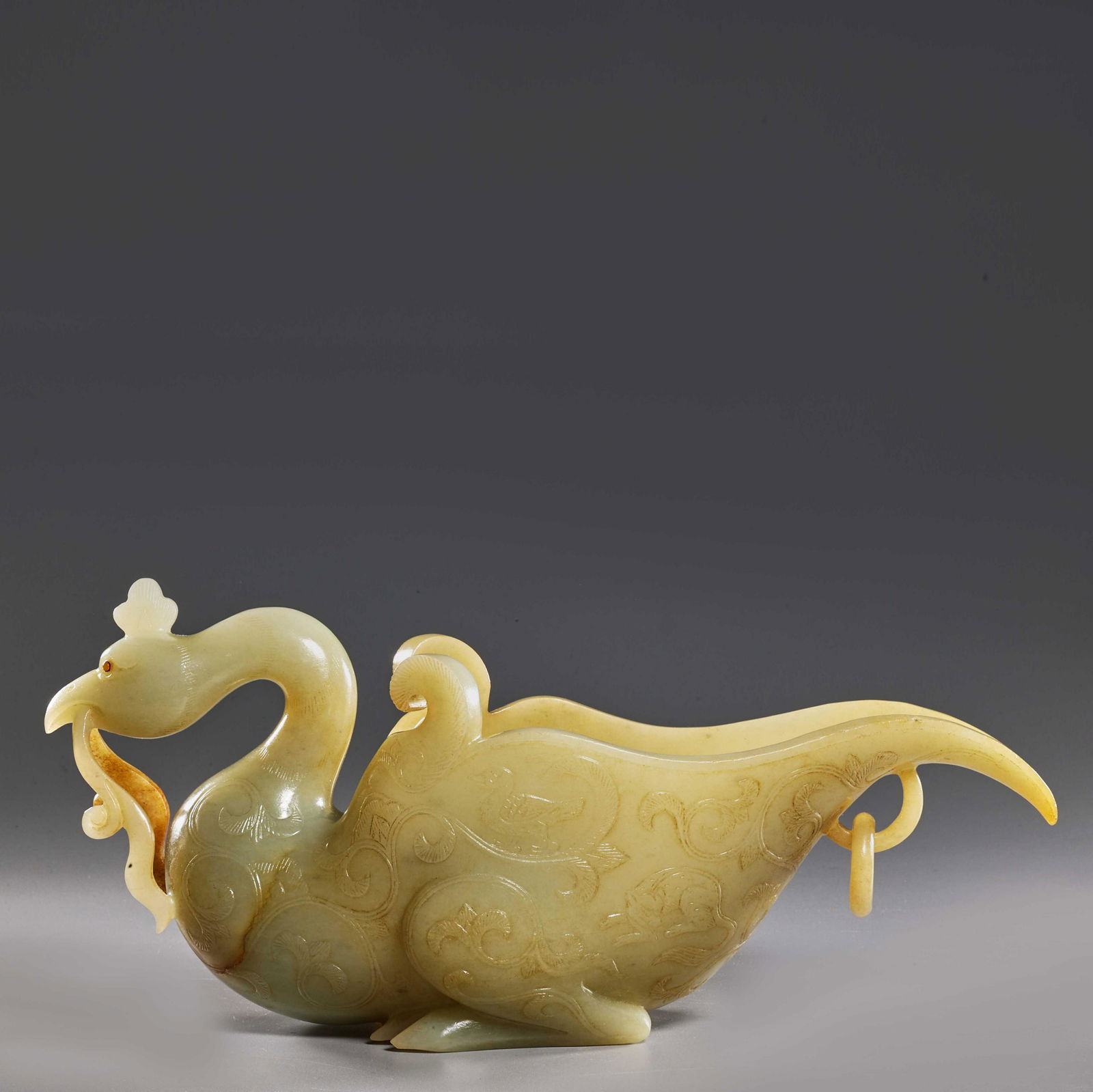 An Exquisite White Jade Phoenix-Shaped Goblet