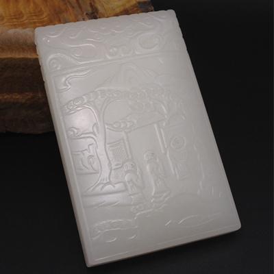 Hetian jade white jade landscape plaque