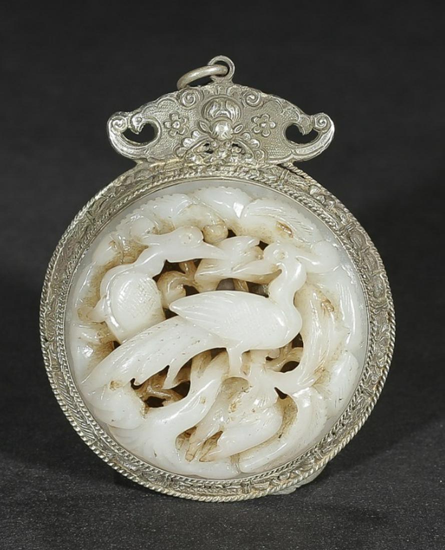HETIAN JADE WITH SILVER PHOENIX PATTERN PENDANT