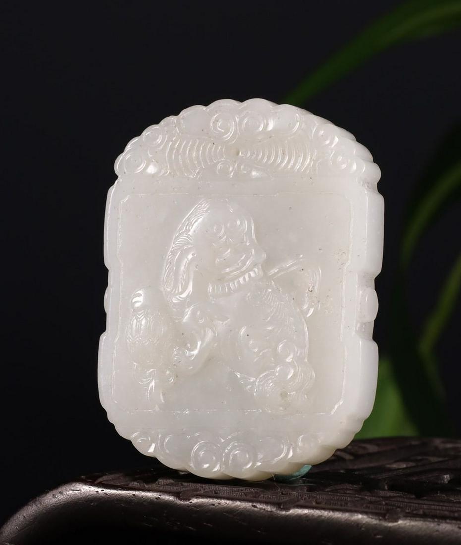 Hetian White Jade Carved Lion Pattern Tablet