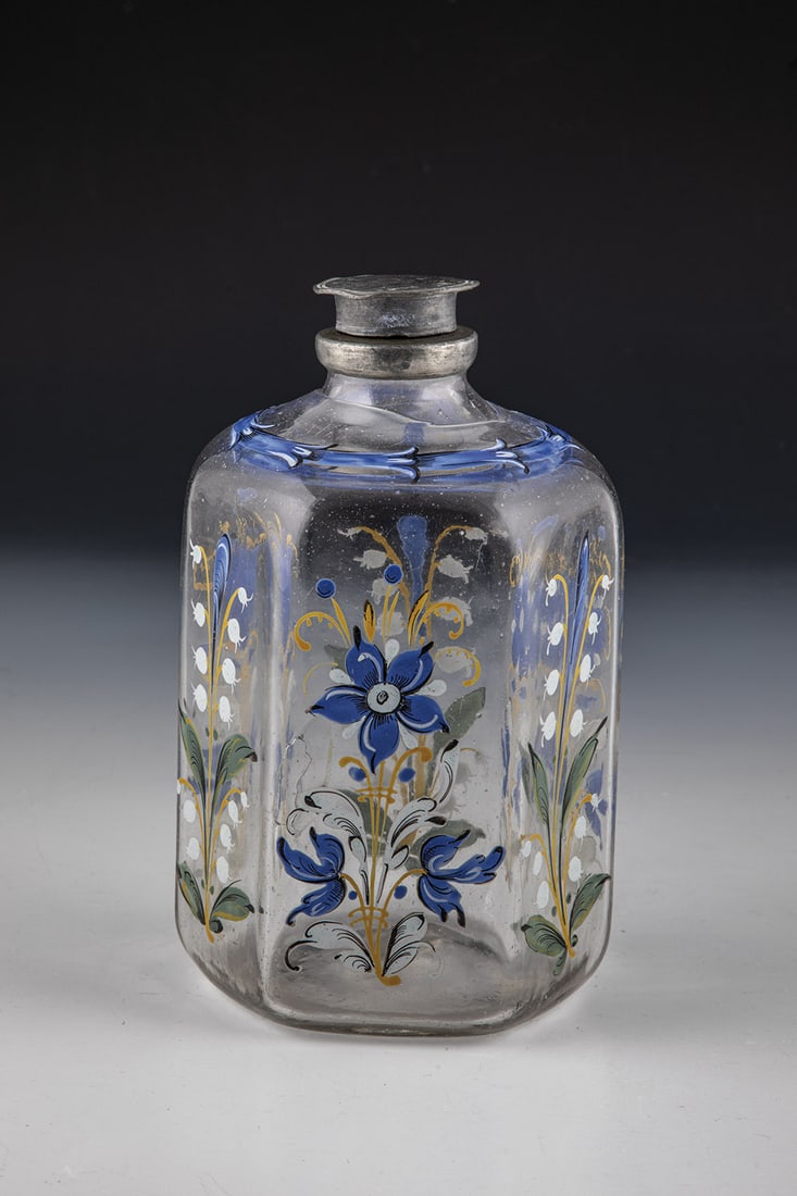 Hexagonal bottle with floral decor