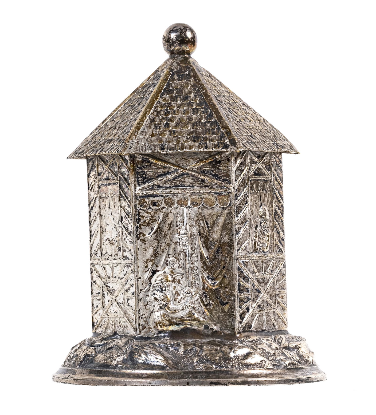 Hexagonal Gazebo Still Bank - Scarce Silvered Brass Example