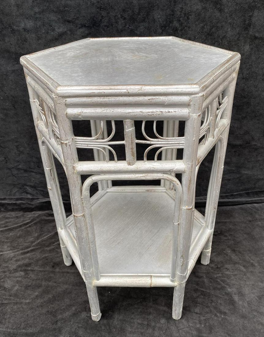 HEXAGONAL SILVER GILT BAMBOO TABLE 24.5" X 18" X 16"