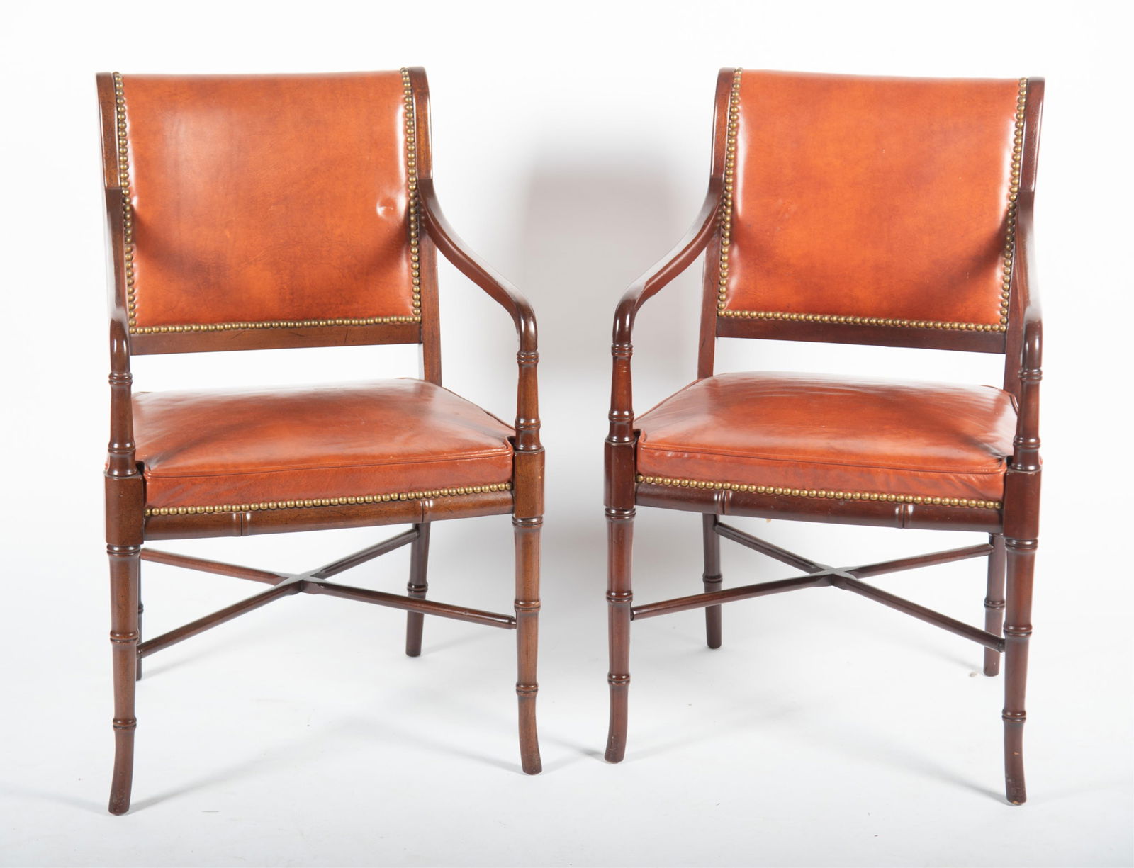 (2) REGENCE STYLE LEATHER-UPHOLSTERED CARVED WALNUT ARMCHAIRSMar 29, 2026Vintage Italian Mahogany Scroll Back Tufted Leather Side Chairs with Nailhead Trim, PairPair of George III Style Mahogany and Leather Upholstered Armchairs6 days LeftElegant Pair of Councill Craftsmen Mahogany Leather Armchairs2 days LeftThree Baroque style close nailed tan leather upholstered chairs, modernApr 01, 2026Chairs with Synthetic Leather, 1920s, Set of 2Design Within Reach - Pair Flight Recliner Chairs5 days LeftPr HEYWOOD WAKEFIELD Side Dining Chairs. "Dog Bone" Models. Dark Stain. Not marked.Mar 31, 2026Pair of George III-Style Leather Wing ChairsMar 29, 2026Pair Century solid mahogany shell carved arm chairsMar 29, 20261980s Exquisite Pair of Vintage Barrel Chairs by Esteemed St. Timothy Furniture.McKinley, Pair of Chippendale Style Leather Upholstered Easy Chairs6 days LeftSet of 2 Mahogany Neoclassical Klismos Armchairs with Cane and Leather Seats9 hrs LeftSet of 4 Antique Hepplewhite Shield Back Chairs by Mt. Vernon Hickory Chair Co2 days LeftPair 19th c. Fauteuil ChairsApr 11, 2026Baker Furniture Chippendale Style Mahogany Chair Suite15 hrs Left