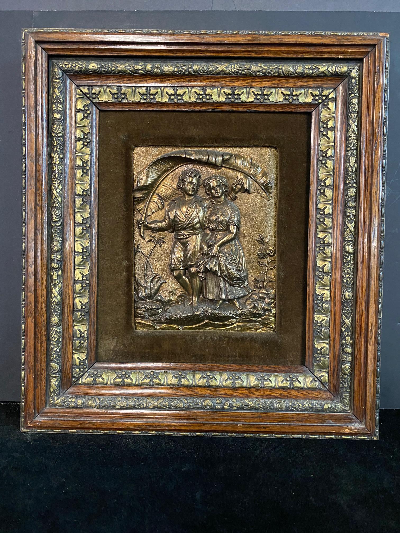 HIGH RELIEF BRONZE PLAQUE WIH ORMOLU FRAME 19" X 16.5"