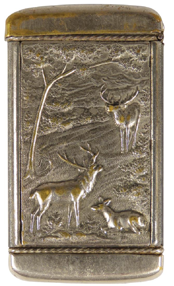 Vintage S. Kirk & Sons Sterling Silver Matchbox Holder with Repousse Floral DesignEdwardian Sterling Silver Stag Matchbox Holder - Birmingham 1903 - With Original Lion Matches Box2 hrs Left1999 Zippo Lighter Where Eagle Dare Bradford, PA XV KMar 07, 2026Vintage Brass Belt Buckle with Raised Deer Scene1 day LeftA Russian 84 Silver Cigarette Box5 days LeftWomen's Vintage Estate Sterling Silver Art Deco Stag BroochMar 12, 2026Sterling Silver Caribou Great North Reindeer Commemorative Medal3 days LeftOne Troy Ounce 999 Silver Bar Giraffe Theme by US Silver Corp3 days LeftHandcrafted Silver Resin Stag Wall Trophy Lodge Decor 19H x 12W x 14D7 days LeftNEW 14K YELLOW GOLD DEER PENDANT 14K YELLOW GOLD NEW DEER PENDANT WEIGHT: 1.4gMar 05, 2026Stampeding Stags Inspired Bronze Statue - 13.5" x 11"Mar 02, 2026Resting Elk Original Bronze Statue - 11.5" x 12"Mar 03, 2026800 Silver Cigarette CaseMar 03, 20261 Ounce .999 Silver Bar Commemorating First Continental Congress 19744 days LeftContinental Metal Card Case with Mythological Relief, Stamped “Victoria,?? Possibly Silver, circa3 days LeftVINTAGE STERLING SILVER ELK FIGURINE WEIGHING 294GMar 07, 2026