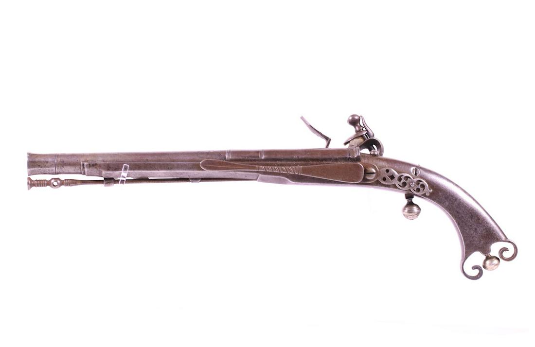 (A) LARGE GERMAN FLINTLOCK HORSEMAN'S PISTOL, PROBABLY BRUNSWICK.May 13, 2026(A) FRENCH BRASS BARREL FLINTLOCK PISTOL, EX. TOM GRINSLADE.May 13, 2026(A) SILVER MOUNTED FLINTLOCK OFFICERS PISTOL BY BRANDER.May 13, 2026(A) FINE ENGLISH SILVER MOUNTED QUEEN ANNE FLINTLOCK OFFICER'S PISTOL BY ISAAC SMITH.May 13, 2026(A) AMERICAN REVOLUTIONARY WAR FLINTLOCK OFFICER'S PISTOL, POSSIBLY JOHN HILLS.May 13, 2026(A) FRENCH SILVER MOUNTED FLINTLOCK PISTOL BY BOURDIEC.May 13, 2026(A) EARLY FLINTLOCK KENTUCKY PISTOL.May 13, 2026(A) REVOLUTIONARY WAR ERA SPANISH PATTERN 1753 FLINTLOCK CAVALRY PISTOL DATED 1780.May 13, 2026EARLY 18TH CENTURY FLINTLOCK HOLSTER PISTOL BYApr 19, 2026INTERESTING FRENCH SCREW CANNON BARREL FLINTLOCKApr 19, 2026AN 18TH CENTURY FLINTLOCK MUSKETOON BY GRIFFIN, LONDONApr 15, 2026(A) INCISE CARVED FLINTLOCK JAEGER CARBINE.May 13, 2026ANTIQUE OTTOMAN EMPIRE TURKISH 18th CENTURY FLINTLOCK PISTOL SILVER DECORATED GUN.Apr 25, 2026EARLY 18th CENTURY UNSIGNED GERMANIC FLINTLOCKApr 19, 2026OF WATERLOO INTEREST - A .750 CALIBRE FLINTLOCK HEAVY DRAGOON PISTOL TO THE ROYAL DRAGOONS,4 days LeftA SCARCE FLINTLOCK MAIL COACH BLUNDERBUSS BY HARDING,5 days Left