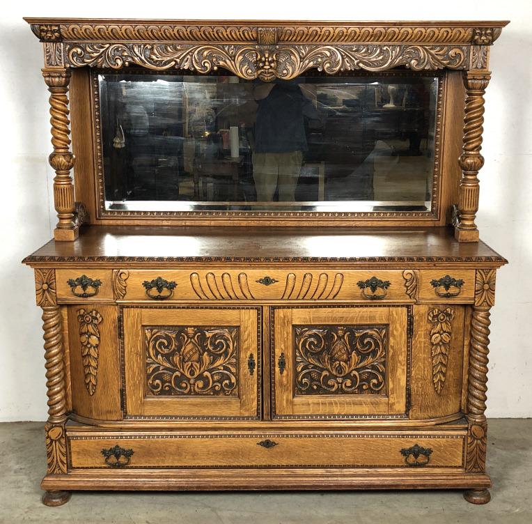 Antique Oak China Cabinet with Ornate Carved Details and Curved Glass HutchLodestar Auctions4.7(444)$475