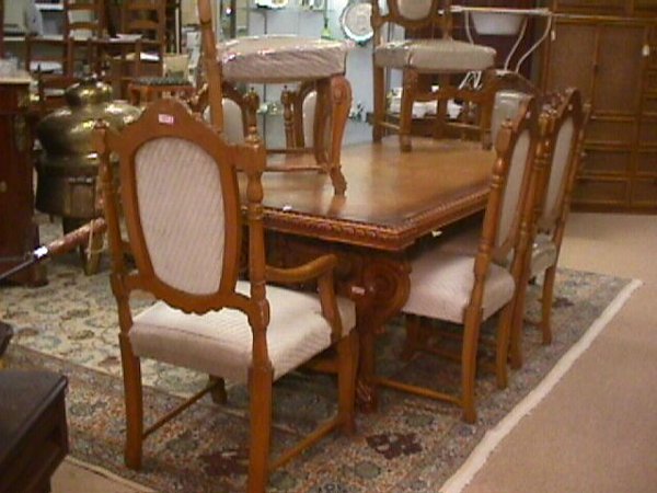 Highly Carved Oak Trestle Table 8 Chairs