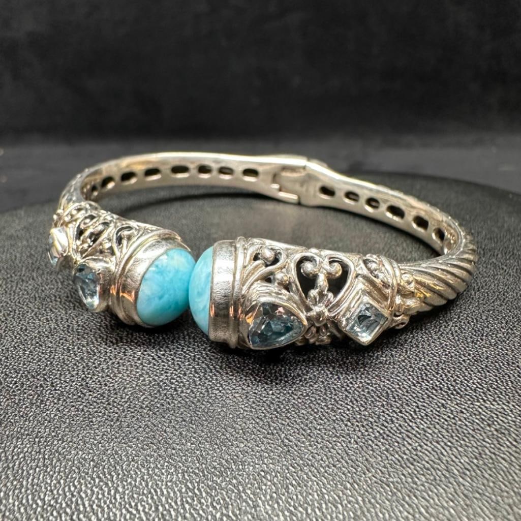 Hinged Sterling Larimar & Topaz Bracelet