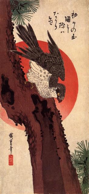 Hiroshige Falcon on Pine with Rising Sun