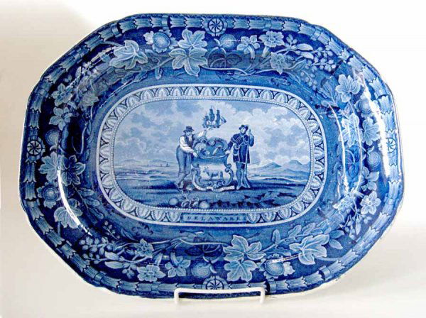 Historical Staffordshire transfer-ware platter "Palace of St. Cloud, France", by Ralph Hall of Swan Historical Staffordshire transfer-ware platter "Palace of St. Cloud, France", by Ralph Hall of Swan Bank Pottery Works, Tunstall, Stoke-on-Trent, England, c. 1830, cobalt blue transfer print on porcel