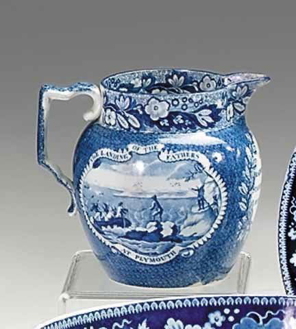 SoldTHREE HISTORICAL BLUE TRANSFERWARE ITEMS.England, second-quarter 19th Century. The first "Landing of Lafayette" plate marked Clews, the second "Lafayette at Franklin's Tomb" unmarked pitcher, and the third "State House Boston" sauce boat marSee Sold Price
