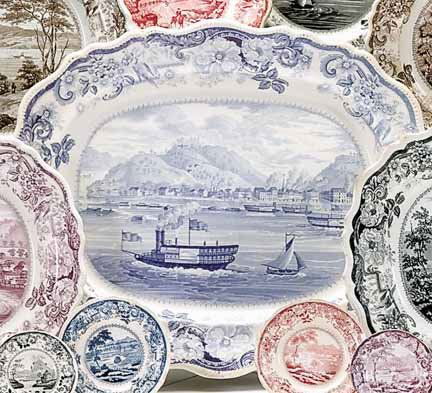 Historical light blue transferware platter, james