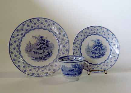 Historical medium blue transferware teabowl and t