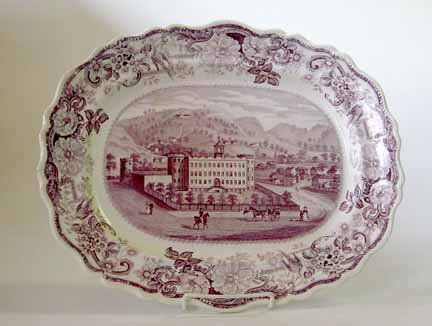 Historical purple transferware platter, clews, co