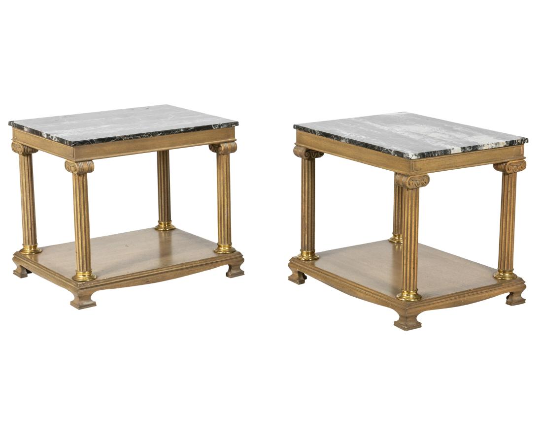 A Diverse LotMar 03, 2026(2) NEOCLASSICAL STYLE SPECIMEN MARBLE-TOP RAM'S HEAD CONSOLE TABLES268 Lots AwayHans Eichenberger (Swiss, 1926-2024) Pair of occasional tables4 days LeftRussian Neoclassical Style, Hollywood Regency, Nightstands, Painted Wood, BronzeContemporary Design 20th Century Pair of Iron Side Tables4 days LeftPair of Swedish Neoclassical Maison Jansen Marble-Top Console Tables, FrenchPair of French Wood Carved Dolphin Console Tables, Pier Tables, GiltwoodHollywood Regency Ebony Bouillote or End Tables, Manner Jansen Mirror Tops, PairPair of Hollywood Regency Églomisé Top Painted Side, End or Centre TablesPR Hollywood Regency Style Tessellate Stone Tables5 days LeftPair of 1960s Hollywood Regency Double-Tier TablesMar 07, 2026Vintage Italian Marble Top Tables Pair with Gold and Black Bases7 days LeftPair of Vintage Regency Stone Gueridon Side Tables with Ring AccentsMar 04, 2026Pair of French Louis XV-style Marble Top Giltwood Consoles5 days LeftModern Style Marble Top Walnut Side Tables, PairMay 07, 2026Woodard Glass Top Tables - 24 days Left