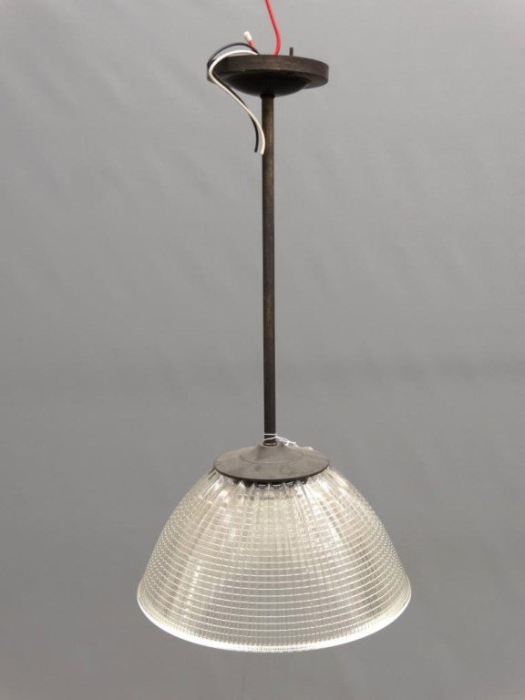 SoldA Holophane Light Fixture with Aluminum Shade 12.5" W xA Holophane Light Fixture with Aluminum Shade united states, early 20th century 12.5" W x 12.5" D x 19" H Estimate $200-400See Sold Price