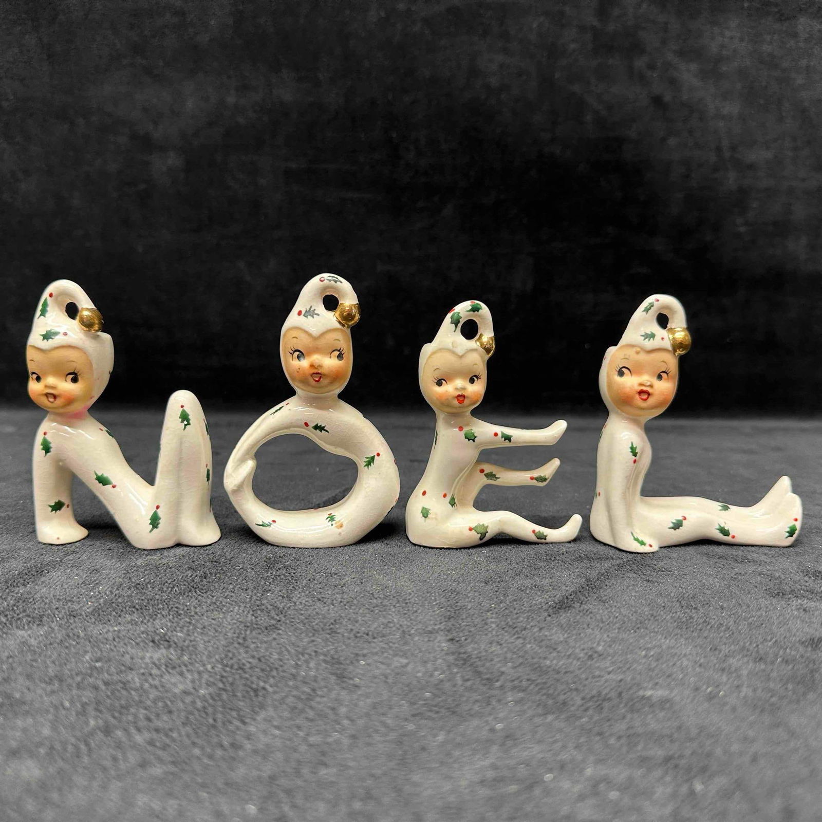 Holt Howard NOEL Pixie Candle Holders Holiday Noel Decor