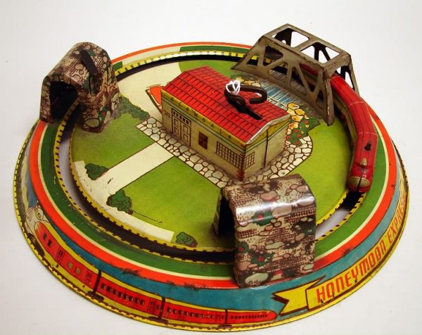 SoldA Marx New York Honeymoon Express Wind-Up Tin Toy.(Marx, 1928) A rare New York Honeymoon Express wind-up tin toy. This New York model is one of roughly forty variations Marx did of their Honeymoon Express wind-up train toys. The plane, often missingSee Sold Price