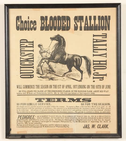 Horse Breeding Broadside 1877